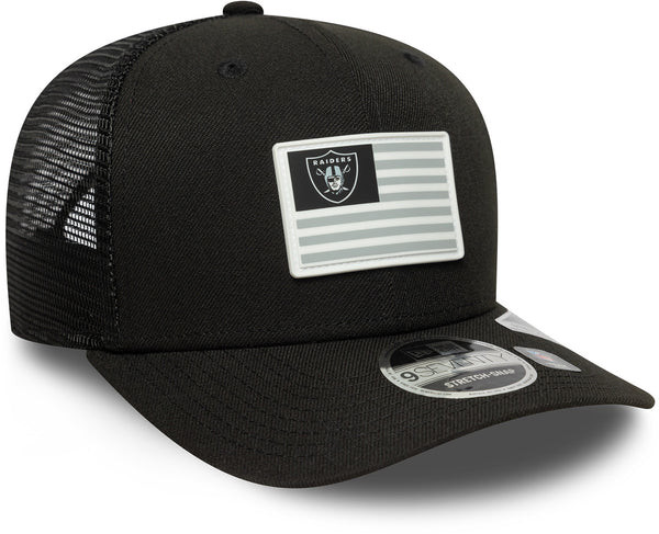 Hímzett Raiders logó az előlapon és NFL-zászló motívum a sapka dizájnjában